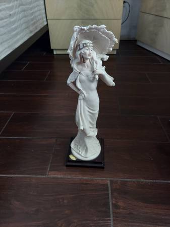 The three statues are named lady with an Umbrella, feelings, and the flirt.