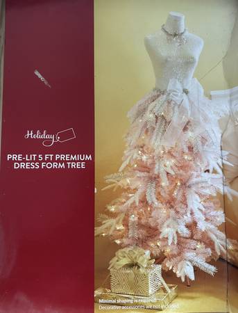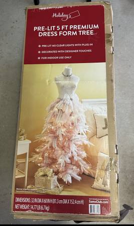5 foot pre lite Christmas Tree Dress 140 clear lights with plug in Pink and white sparkles