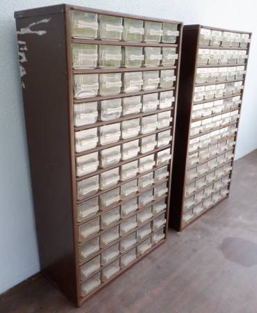 60 Drawer Storage Cabinets for small parts - $10 each, 2 available 12" wide x 21-3/4" tall x 5-3/4" deep